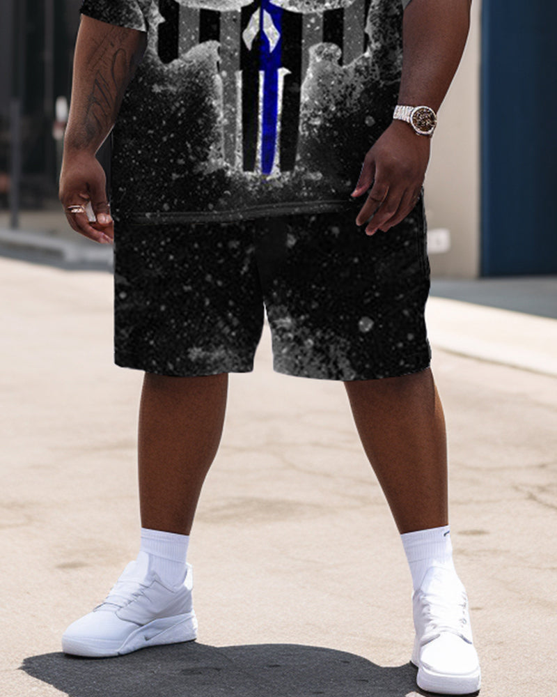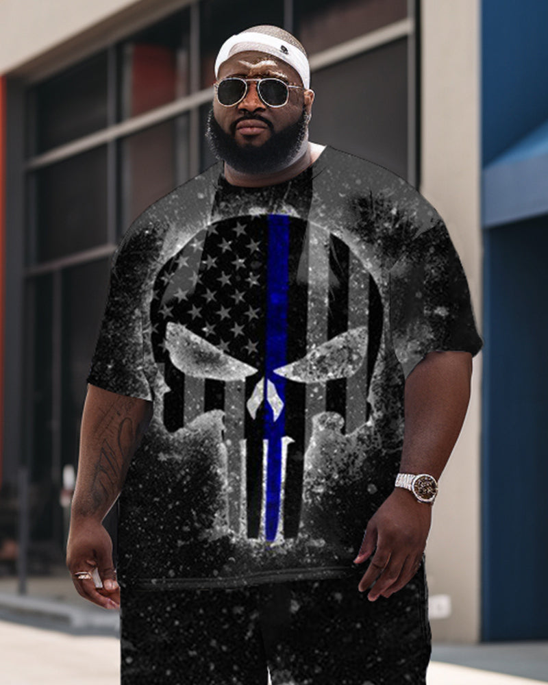 This two-piece set in sleek black captures with a daring edge. Featuring a skull graphic intertwined with patriotic flag elements, this ensemble combines horror and whimsy. The loose fit ensures comfort. You can enjoy the eerie yet fashionable vibe that transitions from street style to holiday festivities.