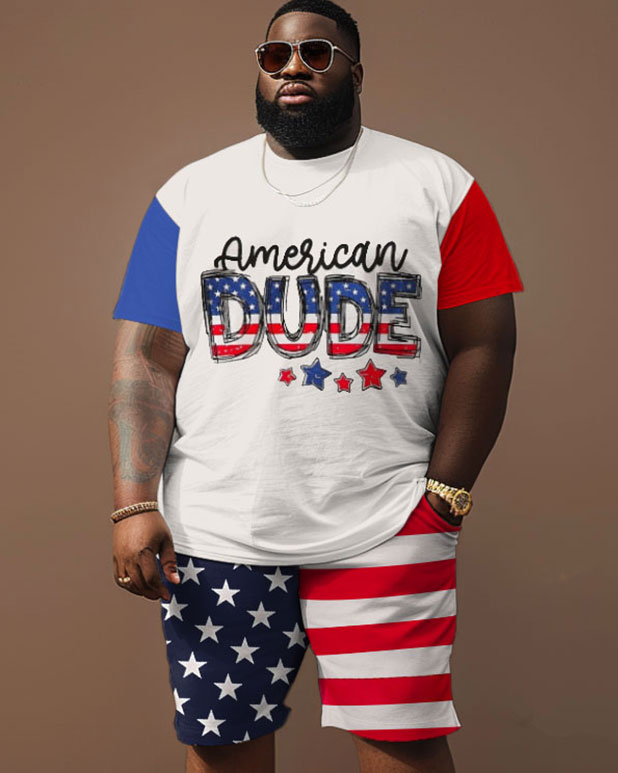 Independence Day Simple Flag Color-block DUDE Letter Print Large Men's Suit
