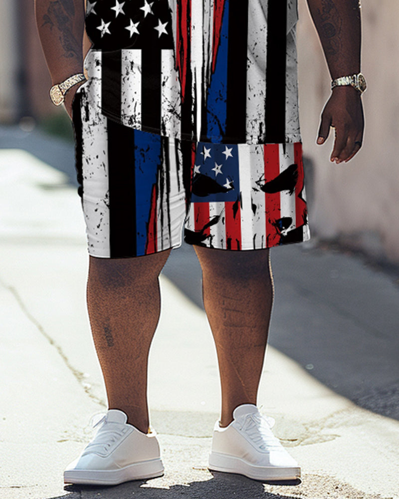 How to dress on Independence Day? Look at this two-piece set! The relaxed-fit black set combines American flag elements and skull motifs, creating a street-style aesthetic. This versatile set combines the festive spirit with street fashion, offering a unique take on traditional patriotic attire.