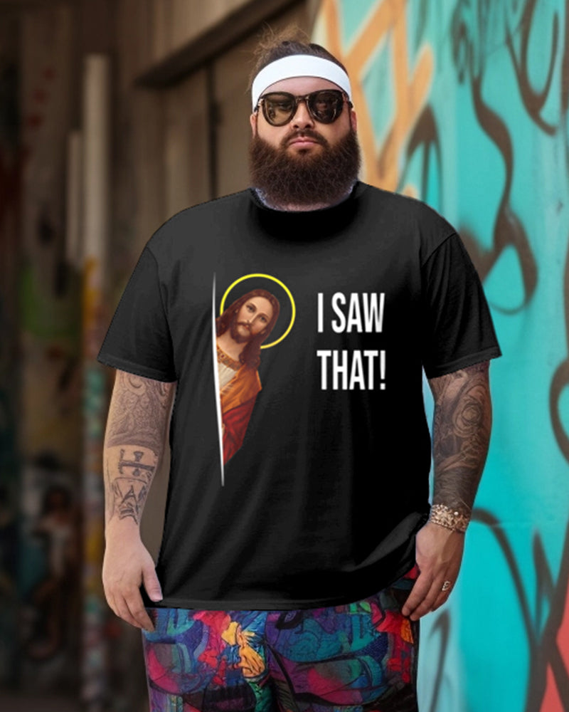 This Men's Letter Printing set is a bold declaration of faith and pop culture fusion, featuring a striking letter print that combines spiritual inspiration with modern design. Do you know, the letter print is a powerful visual element that brings a message of faith to the forefront. The phrase "Jesus I SAW THAT!" is a reminder of the omnipresence of faith in daily life. It is Suitable for church gatherings, spiritual events, or casual wear with a meaningful twist.