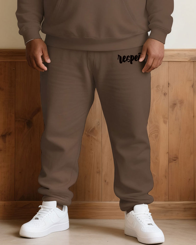 Large Size Men's Autumn And Winter Warm Cold-proof Brown "respect" Slogan Printed Hoodie Sweatpants Set