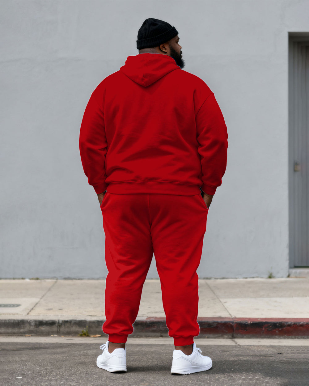 Large Size Men's Autumn And Winter Warm Cold-proof Gentleman Red & Black Chest Pony Kangaroo Large Pocket Hoodie Sweatpants Set