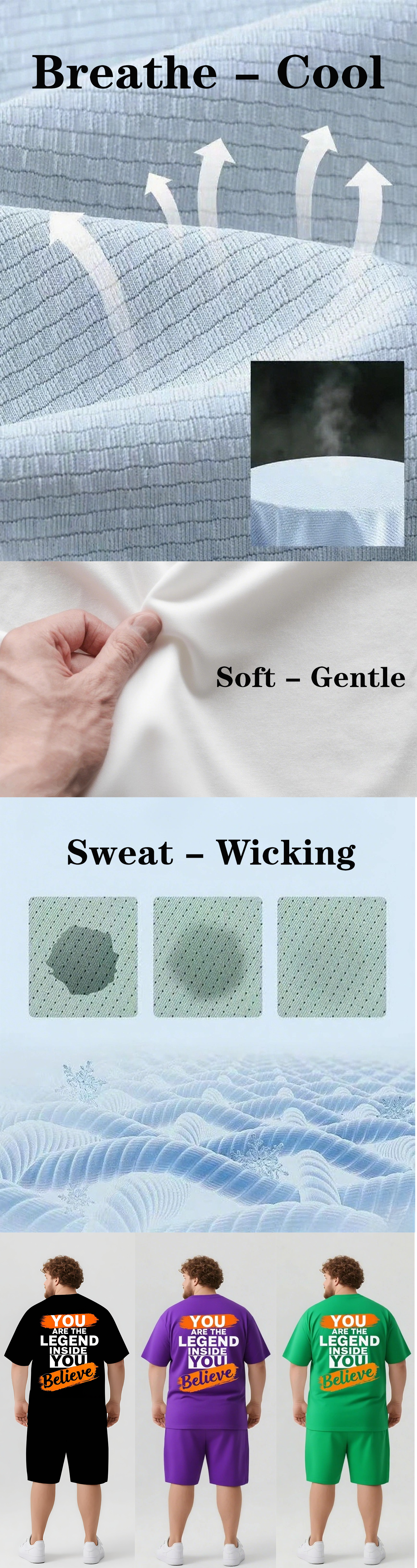Legend Starts with Your Belief Men's Big and Tall Simple Back Lettering Short Sleeve T-shirt Shorts Set