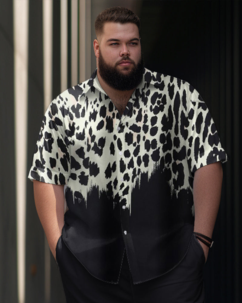 Leopard Print Short Sleeve Shirt Trousers Suit Men's Plus Size