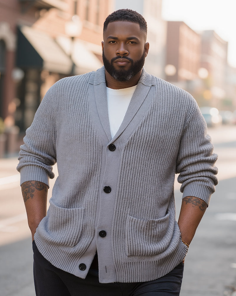 M-2XL Knitted Cardigan Lapel Long Sleeve Sweater Coat
