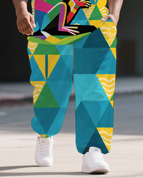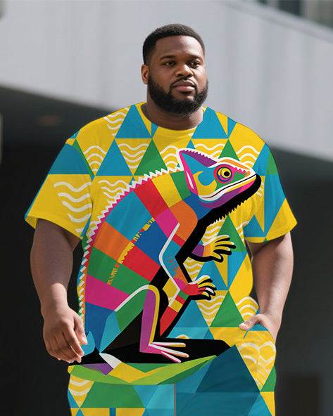 Man's Big Size Animal World Chameleon Printed Outdoor Short-Sleeved T-shirt Pants Set