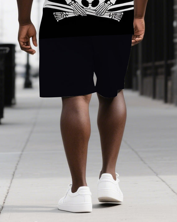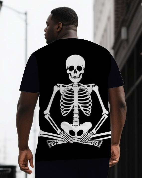 Meditate Like Skeleton Men's Big & Tall Skull Back Printed Short Sleeve T-shirt 2-Piece Set
