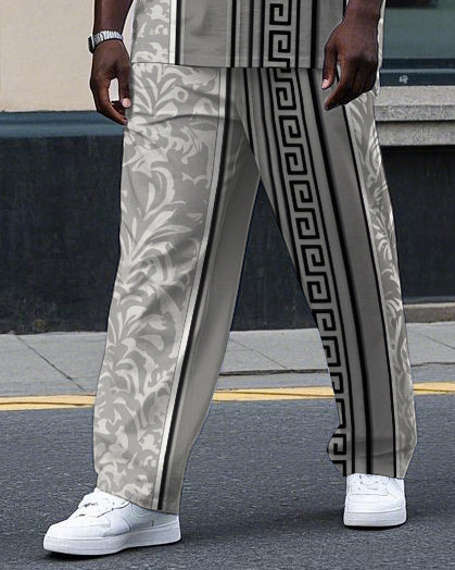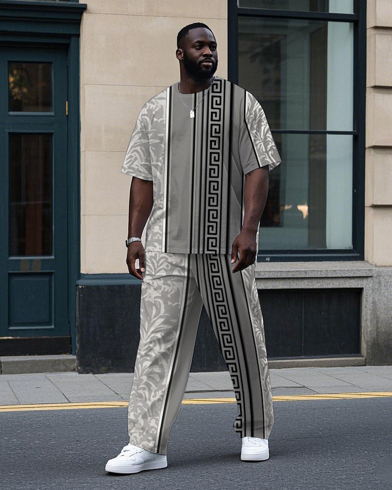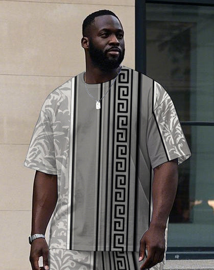 Men's Big and Tall Artistic Retro Floral Geometric Pattern Printed Casual Short Sleeve T-shirt Pants Set