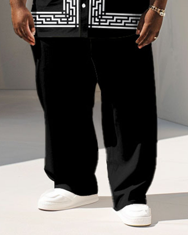 This is designed with big & tall gentlemen! It ensures comfort with body-friendly fits. The sleek black backdrop is adorned with classic, white geometric prints, infusing a touch of retro charm into your everyday wear.