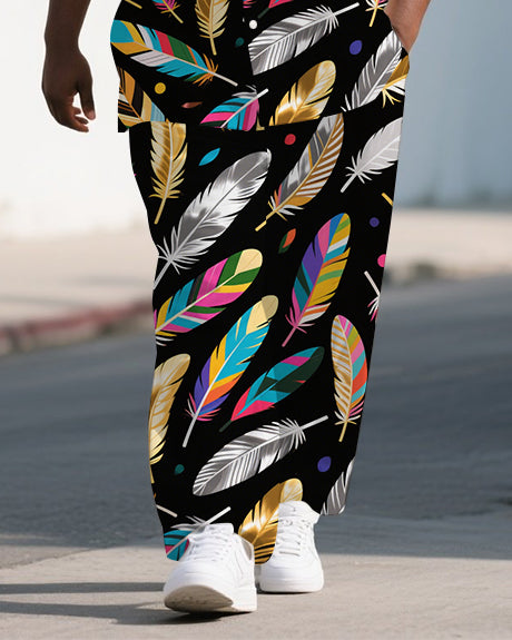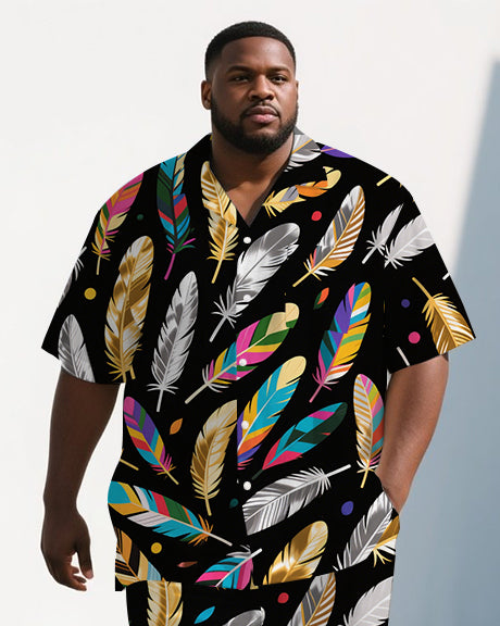 Men's Big and Tall Cartoon World Brilliant Feather Street Style Short-Sleeve Shirt Pants Sets