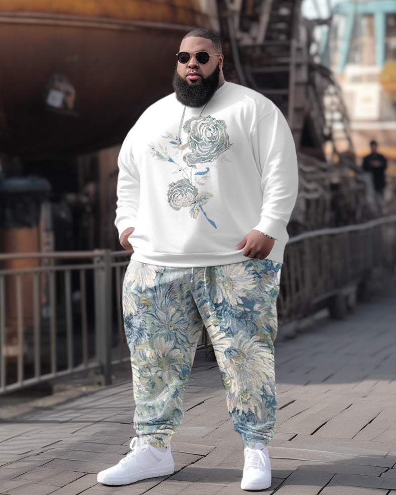 This men's two-piece set shows you a retro fashion with striking blue rose prints, offering a relaxed, vintage vibe perfect for making a fashion statement. The loose fit ensures comfort, making it ideal for casual outings or lounging. Embrace retro fashion with a modern twist in this stylish ensemble!