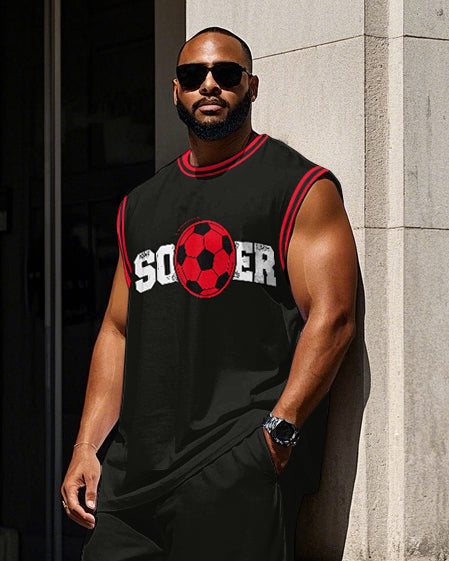 Men's Big and Tall Funny Letter SOCCER & Football Printed Basketball Vest and Shorts Set
