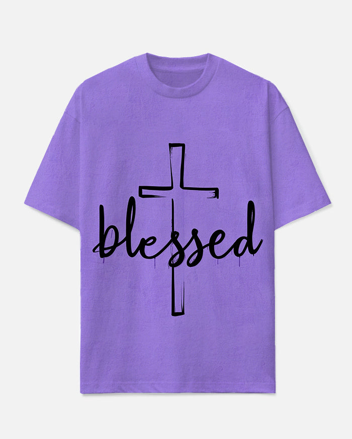 Men's Big and Tall Simple Cross Blessed Letter Printed Casual Short Sleeve T-shirt
