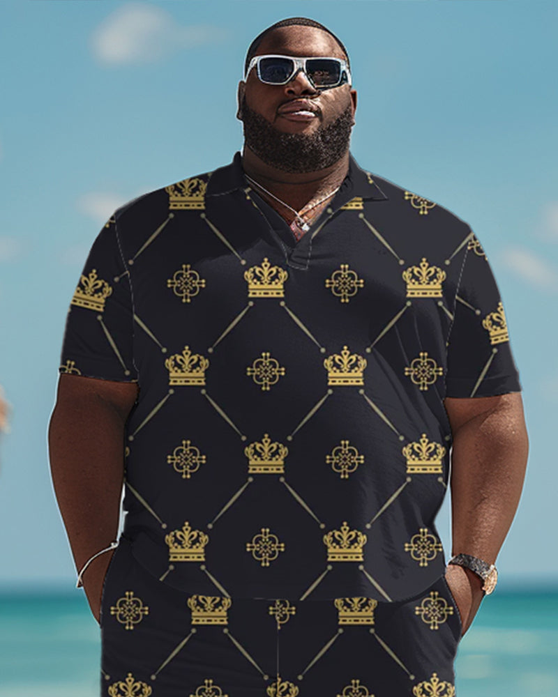 Men's Big Classic Crown Textured Polo Shirt Shorts Suit