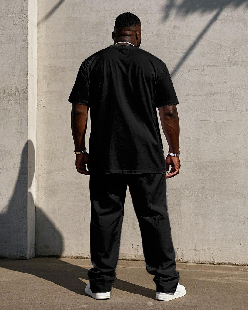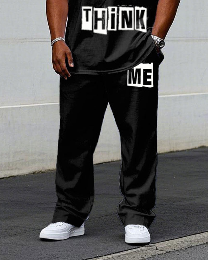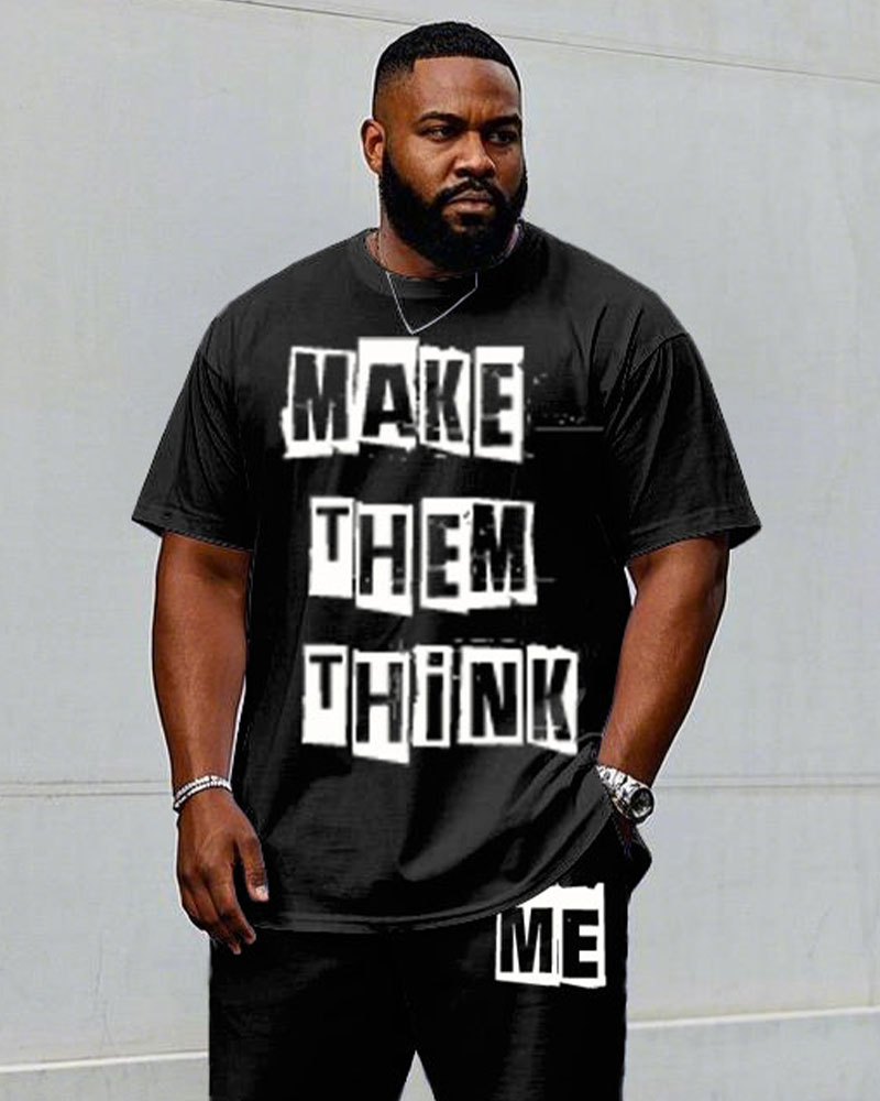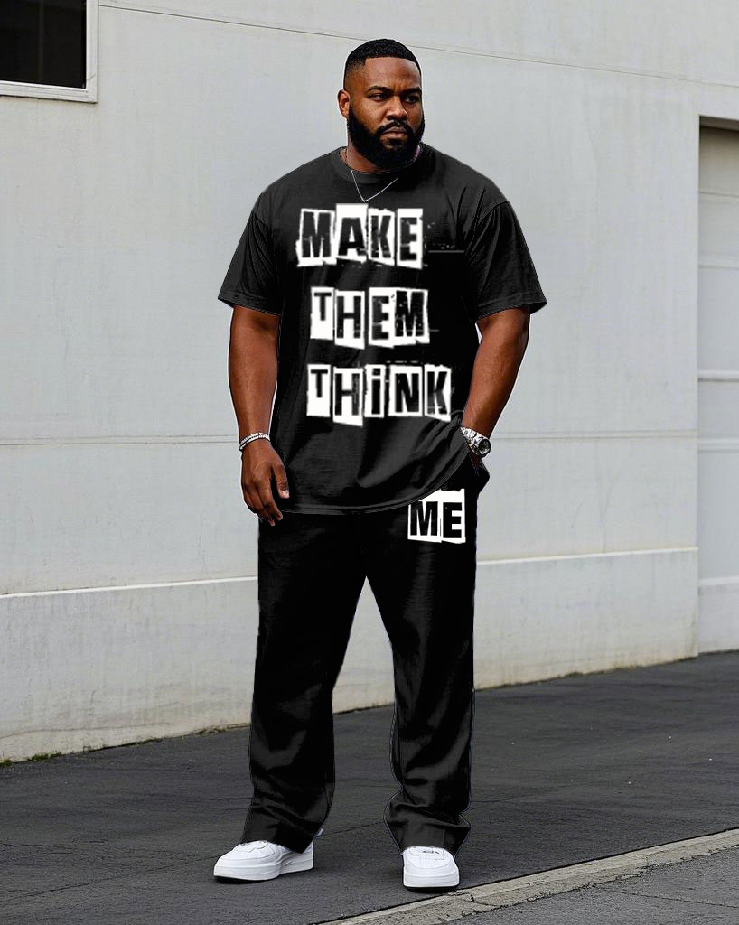 Men's Big "Let Them Think Me" Slogan Printed Short-Sleeved T-Shirt Pants Suit