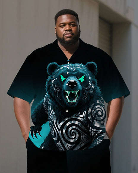 Men's Big Size Cartoon Soldier Bear Theme Simple Casual Fashion Short Sleeve Shirt Pants Set