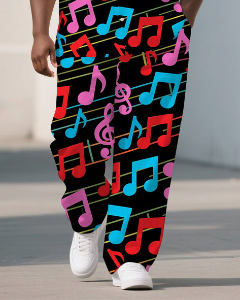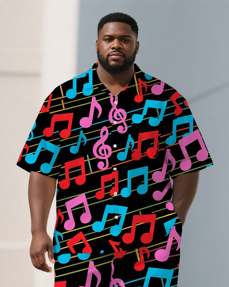 Men's Big Size Casual Cartoon World Musical Note Printed Short-Sleeve Shirt Pants Sets
