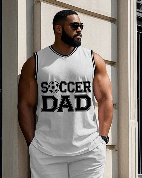 Men's Big Size Funny SOCCER DAD & Football Printed Basketball Vest and Shorts Set
