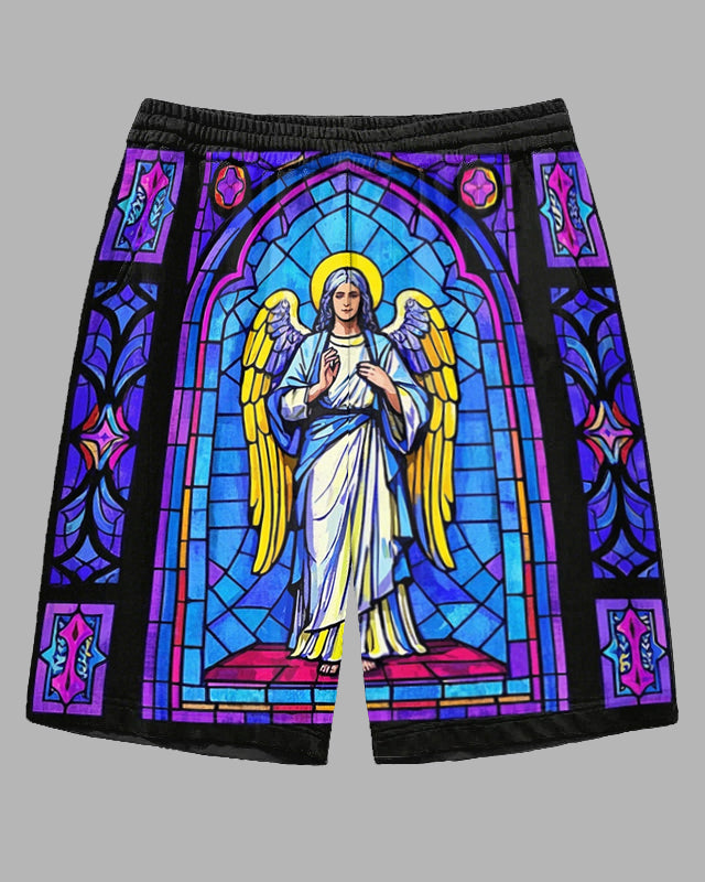 Men's Big Size Retro Savior Mural Printed Outdoor Casual Shorts