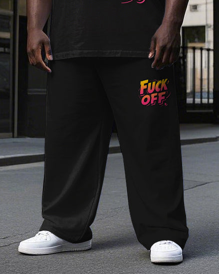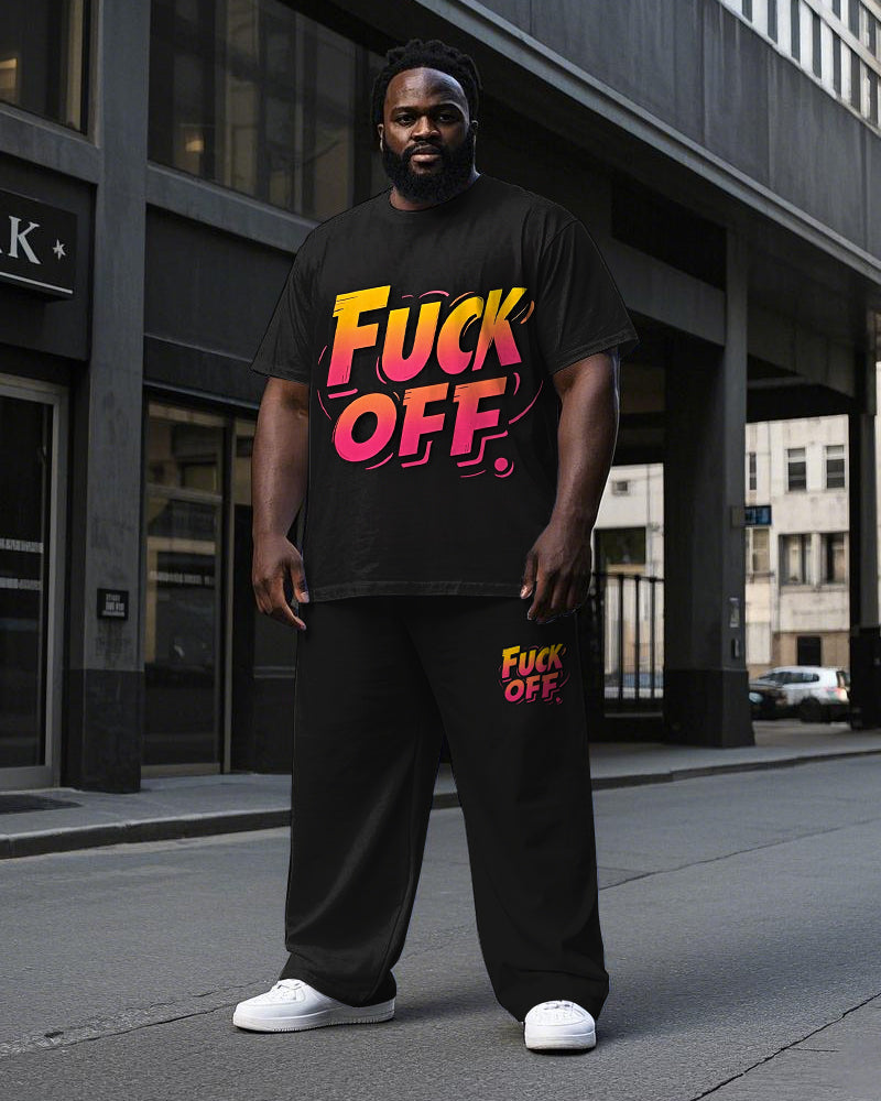 Men's Big Size Simple Gradient FUCK OFF Letter Printed Short Sleeve T-shirt Pants Set