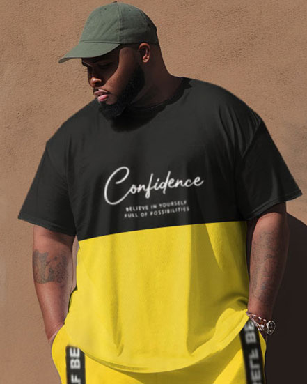 This men's big-size two-piece set features a retro color block design, simple yet stunning. The wide range of sizes allows big men don't suffer size restrictions. You can easily control the versatile style for various occasions with retro and modern elements.
