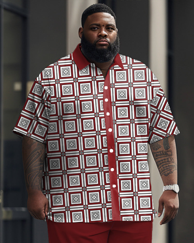 Step into summer with this men's big & tall 2-piece set, featuring a bold geometric square print. Crafted from a breathable polyester blend, this set keeps you cool even on the warmest days. With relaxed cut and functional design details, this set is perfect for those who embrace vintage style with a modern twist.