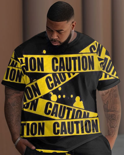 Break boundaries in this caution-tape print 2-piece set for big & tall men that redefines streetwear sophistication. The bold graphic makes a powerful style statement, while the technical fabric delivers uncompromising comfort for urban adventures. Made for the modern man who values quality and style.
