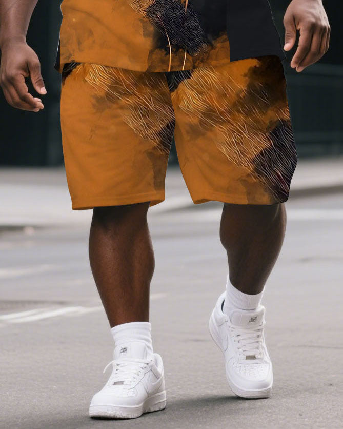 Men's Big & Tall Cartoon Splicing Headphone Gorillas Print Short-Sleeved T-shirt & Short Set