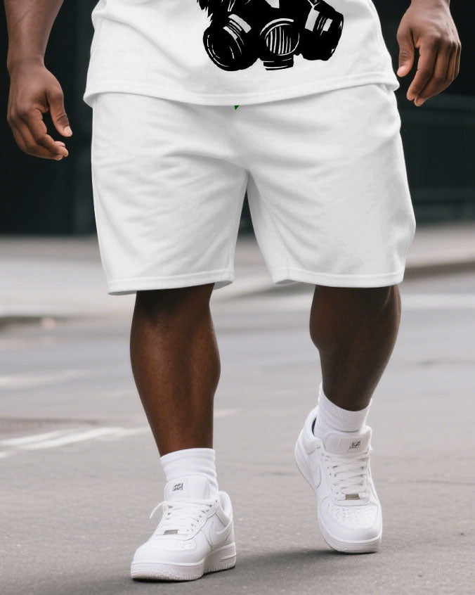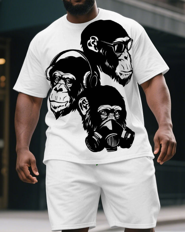Men's Big & Tall Cartoon Three Gorillas Print Casual Short-Sleeved T-shirt and Short 2-piece Set