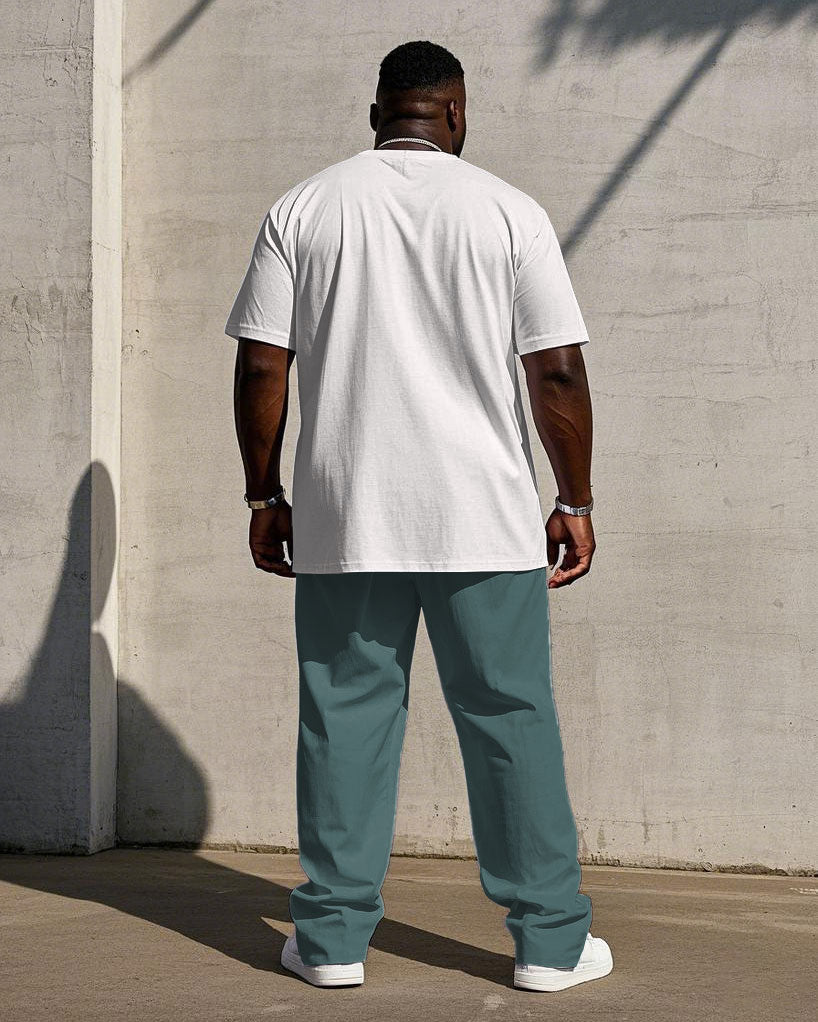 Fresh, clean, and effortlessly modern—this big & tall two-piece set blends white and green color-blocking. Designed with breathable fabric and a relaxed fit, it’s built for comfort whether you're on the move or off the clock. With subtle design and an easygoing vibe, this set is your go-to for sporty-casual days.