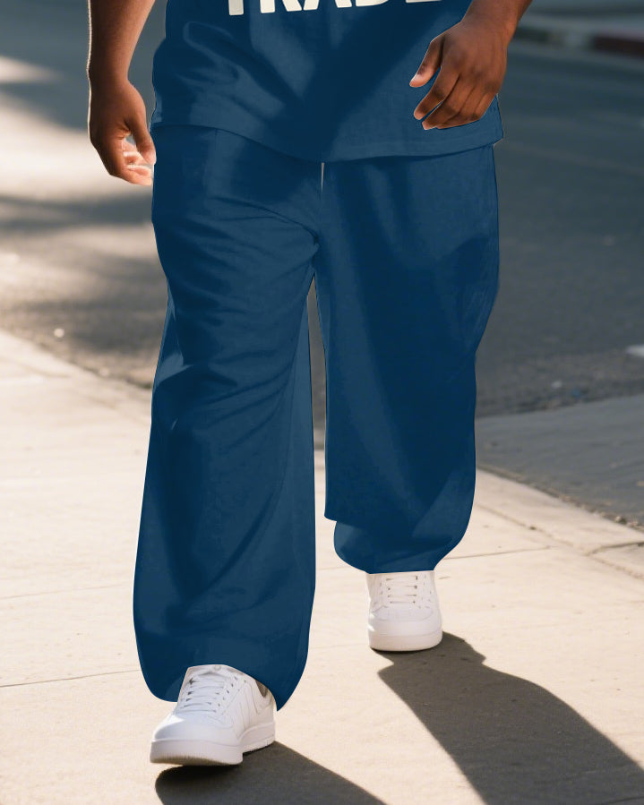 Men's Big & Tall Casual Funny Tariff Saying PrintedShort Sleeve T-Shirt Pants Two-Piece Suit