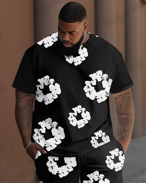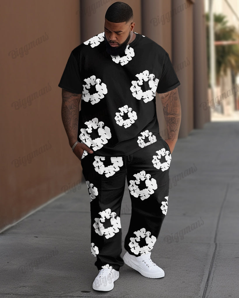 Minimal doesn’t mean boring. This big & tall men’s set strips it down with sleek black-and-white styling and a crisp cotton wreath print—perfect for warm-weather days when you want to look sharp without trying too hard. With soft, breathable fabric and a roomy cut, it’s your go-to for effortless summer cool.