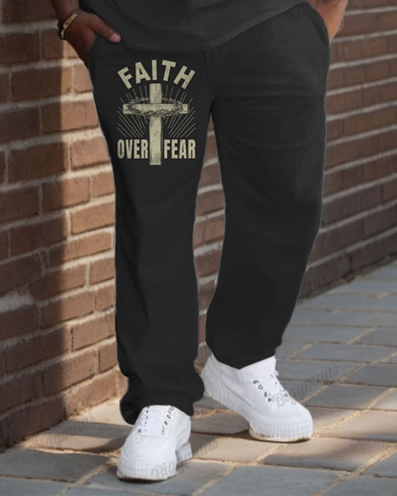 Stay stylish in this men's big & tall 2-piece set. Featuring a bold "FAITH" and cross print, this set makes a statement while offering comfort in a polyester blend fabric. The loose yet structured fit is perfect for all-day wear, making it ideal for various occasions, from casual outings to street style events.