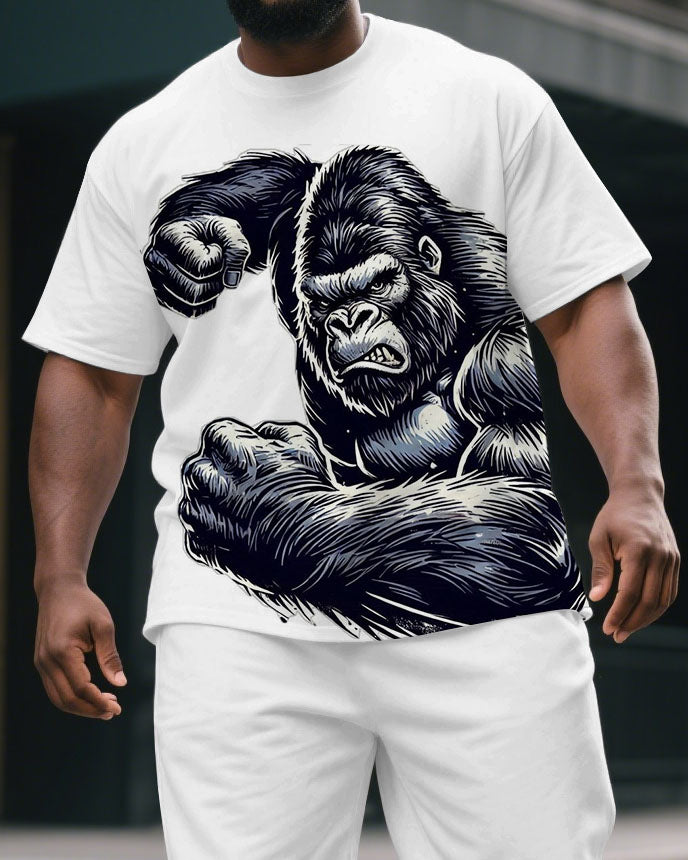 Men's Big & Tall Fierce Hitting Gorillas Print Daily Fashion Short-Sleeved T-shirt & Short Set