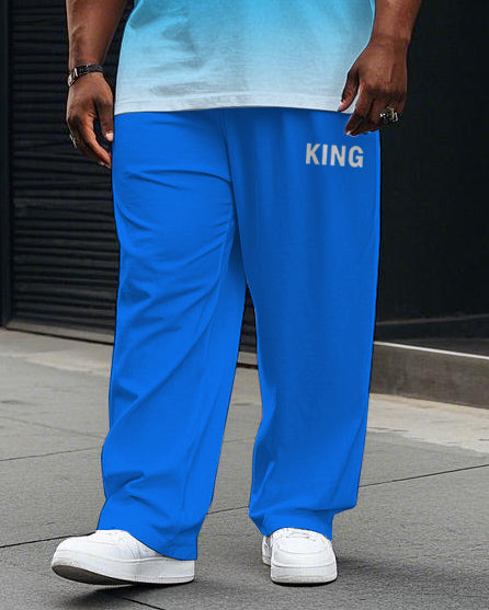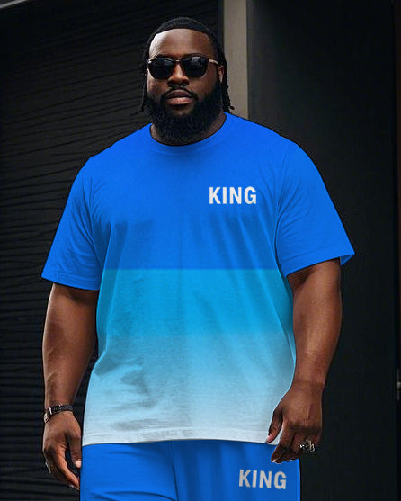 Men's Big & Tall Gradient Splicing Style Letter KING Printed Casual Short Sleeve T-shirt Pants Set