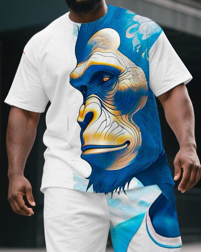Men's Big & Tall Handsome Blue Gorillas Print Casual Short-Sleeved T-shirt & Short Set