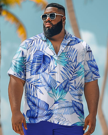 Escape to the tropics with this men's big & tall Hawaiian shirt and shorts set, featuring palm frond prints that evoke island breezes. The breathable fabric resists wrinkles and wicks moisture, while the relaxed-yet-tailored cut flatters taller frames - your perfect companion for everyday summer style.