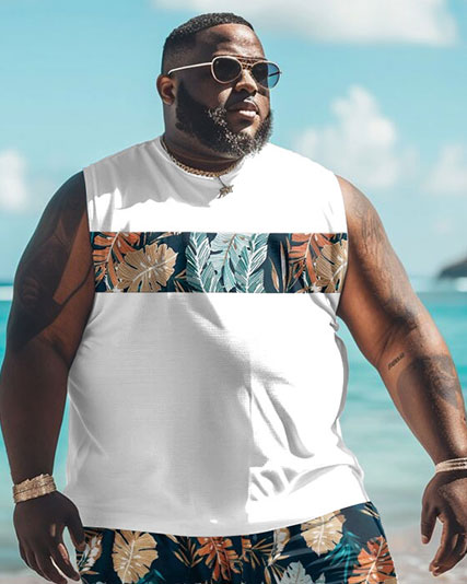 Embrace island vibes with this men’s big & tall tank set, styled with a palm leaf stripe print. The breathable four-way stretch fabric keeps you cool and flexible, while the relaxed 3D cut enhances movement and comfort. With its thoughtful details, it’s a reliable pick for casual events or beach travel.