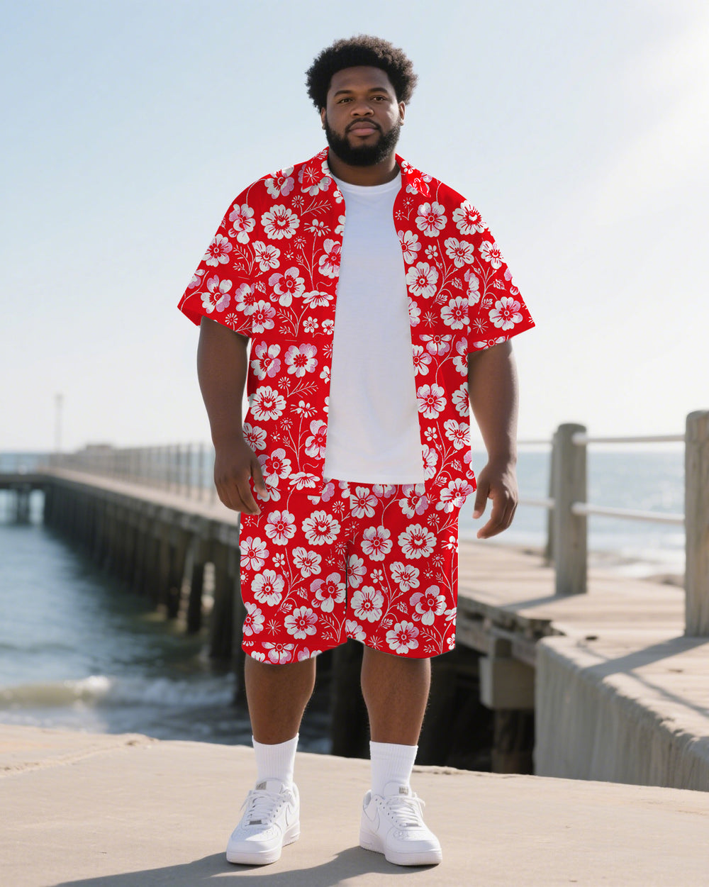 Men's Big & Tall Hawaiian Theme Flower Printed 2-Piece Short Sleeve Shirt Shorts Suits