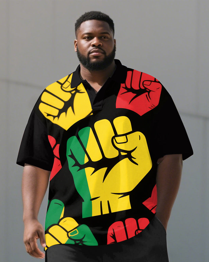 Men's Big & Tall Juneteenth Theme Fists Printed Short Sleeve Polo Shirt Shorts 2-Piece Suit