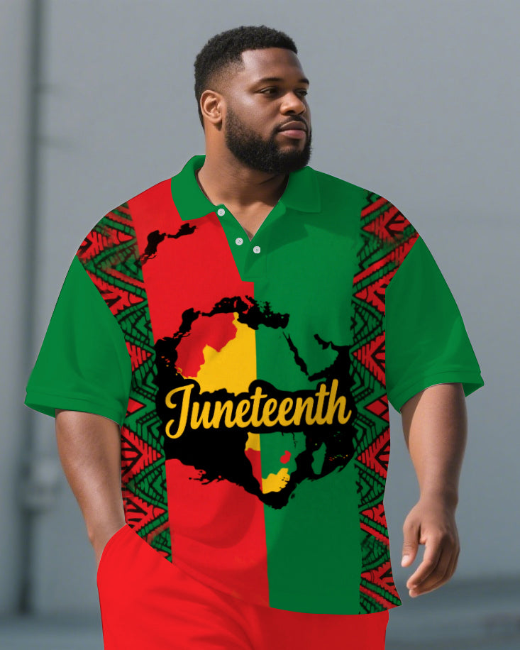 Men's Big & Tall Map Style Juneteenth Theme Festival Short Sleeve Polo Shirt Shorts Suit