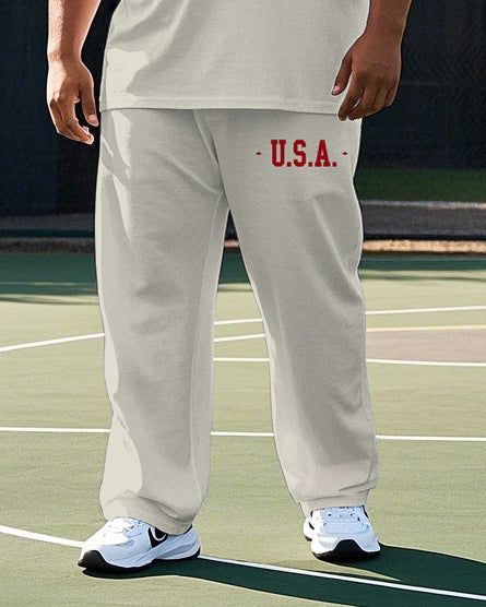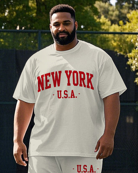 Men's Big & Tall NEW YORK USE Simple Letter Printed Casual Short Sleeve T-shirt Pants Set