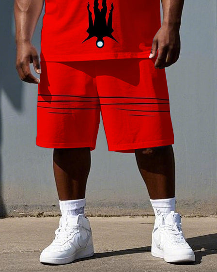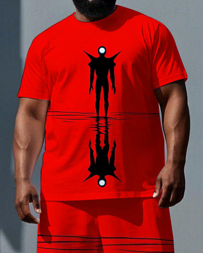 Men's Big & Tall Punk Style Alien Reflection Print Casual Short-Sleeve T-shirt and Shorts Set