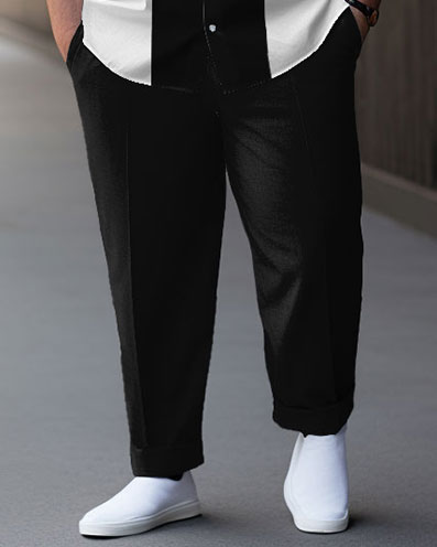 Embrace refined minimalism with this men's big & tall walking suit, where black-and-white color-blocking creates elegance. The stretch fabric and tailored-yet-relaxed cut provide comfort for those who appreciate clean lines and versatile style - equally sharp for casual lounging or office meetings.