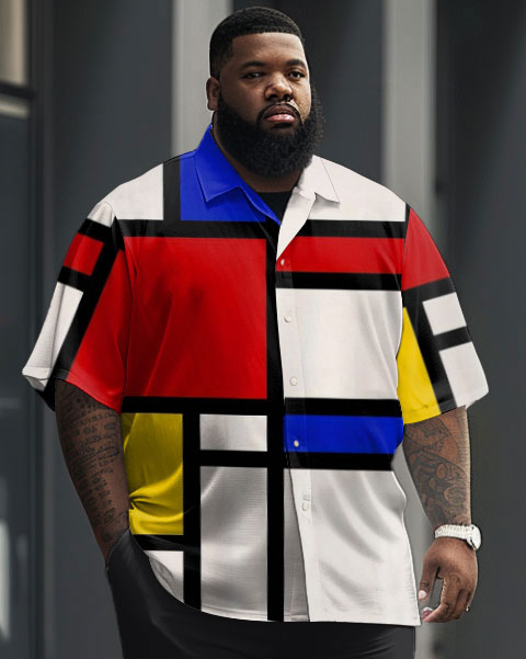 Our men’s big & tall short-sleeve shirt set brings Piet Mondrian’s abstract style to life with bold color-blocking. The relaxed yet tailored fit ensures comfort, while the breathable fabric keeps you cool. Designed for the style-conscious man, it combines artistic sophistication with everyday versatility.