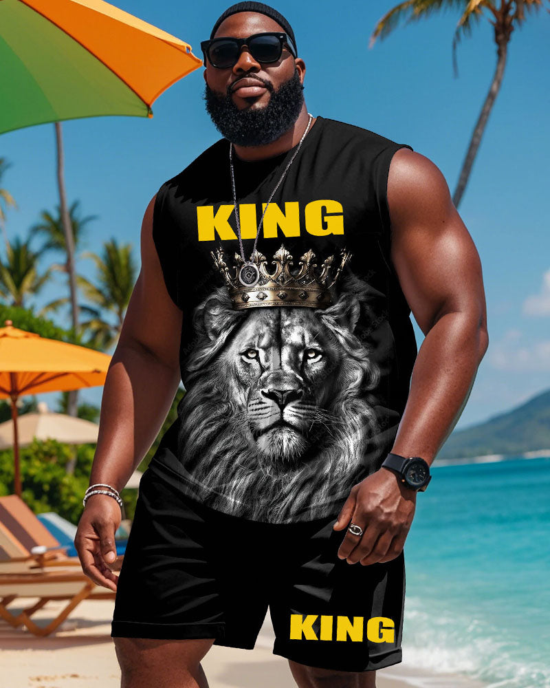 Chilling in style this summer with this men's big & tall tank set. Featuring bold "Lion King" and "KING" prints, it gives off a strong, commanding vibe. The loose, comfortable design ensures freedom of movement, while the breathable polyester blend fabric keeps you cool all day long.