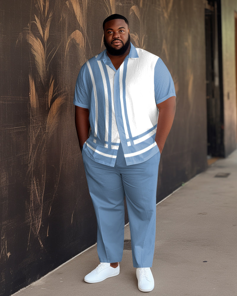 Experience our men's for comfort and style. This set is designed with a blue and white splicing style for a fresh and modern striped style. The loose fit allows you to move freely on various occasions. The versatility of this set makes it easy to wear in different styles and is suitable for multiple seasons.
