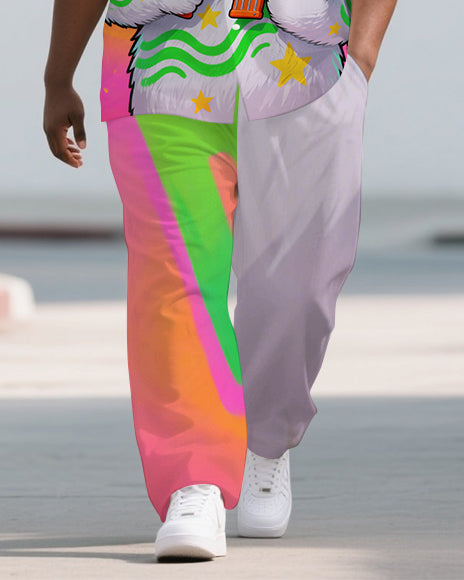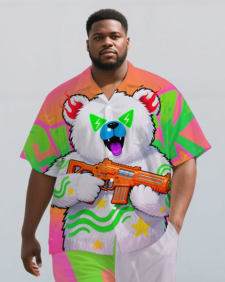 Men's Cartoon Bear with Gun Street Fashion Short Sleeve Shirt and Pants 2-Piece Set
