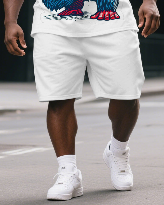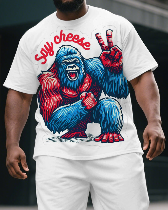 Men's Cartoon Happy Gorillas Say Cheese Print Big & Tall Short-Sleeve T-shirt & Short Set