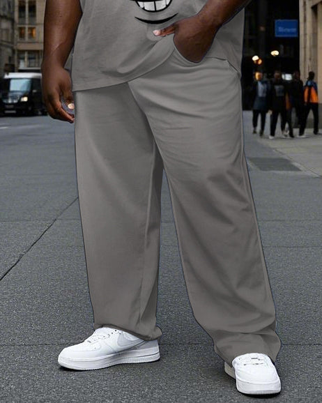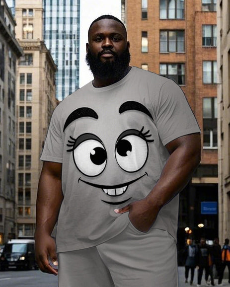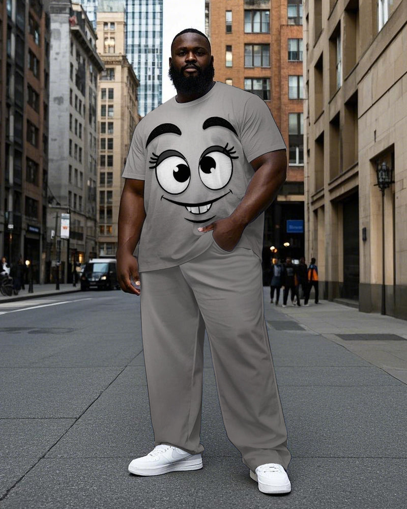 Men's Cartoon Smiley Face Printed Street Fashion Short Sleeve T-shirt Pants 2-Piece Set